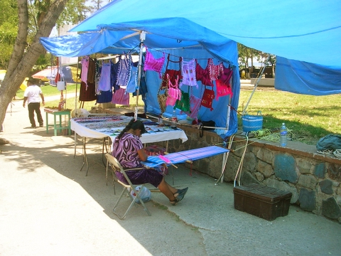 algunos puestos de artesanías de miembros de la comunidad triqui de Copala en Chapala, Jalisco - julio de 2006