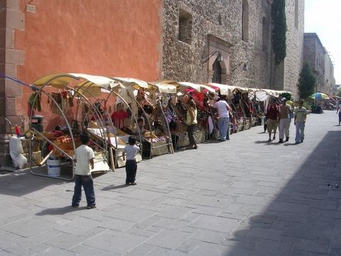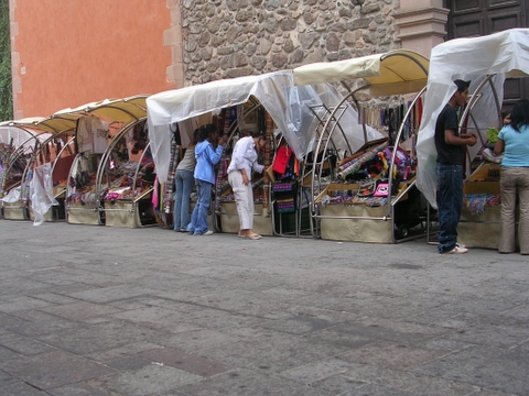 Los puestos de artesanos triquis en el Callejón de San Francisco en San Luis Potosí, SLP - julio de 2006