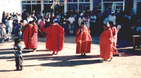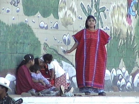 Mujeres triquis bailando al estilo tradicional en uno de los primeros