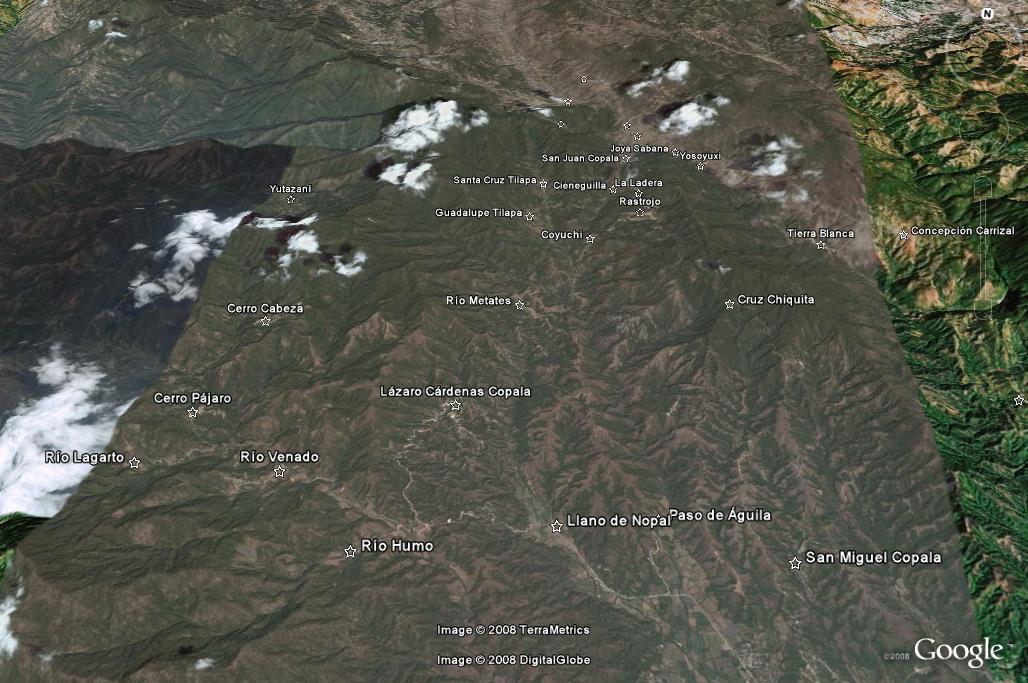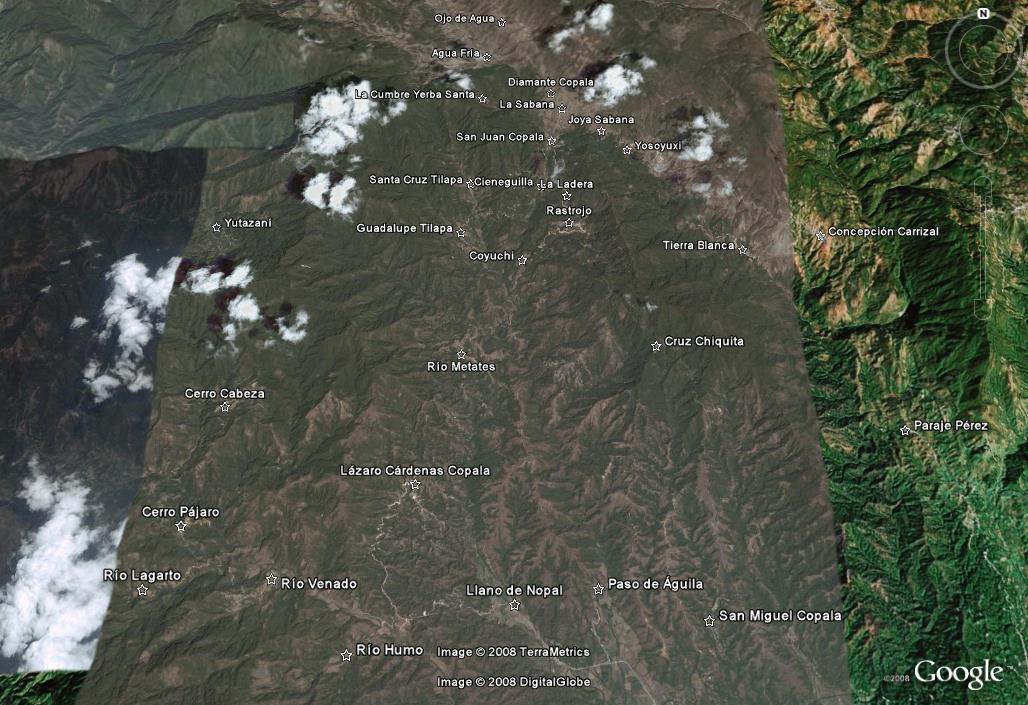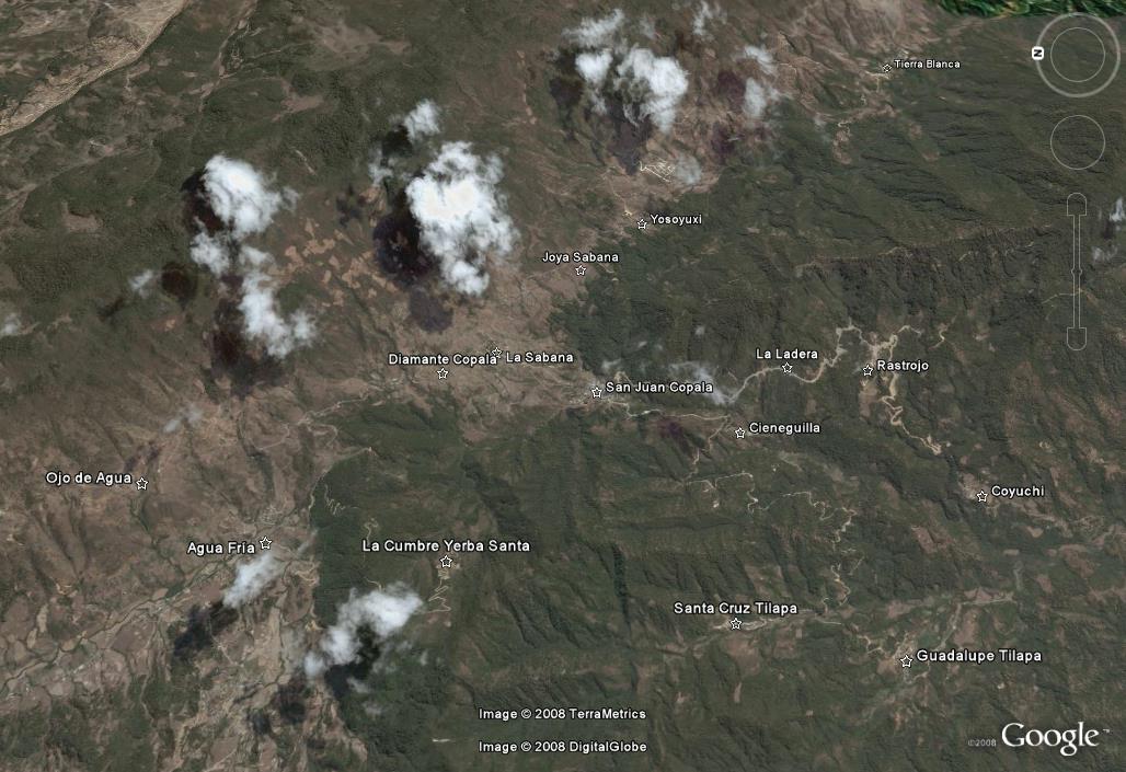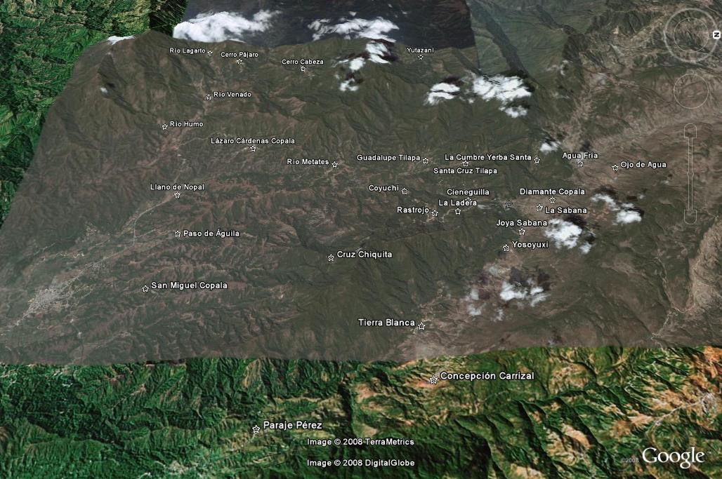 NOTA: No están señaladas todas las comunidades pertenecientes a Copala en estas fotos porque aún nos falta consultar a más personas para ubicar a algunos barrios, especialmente por la parte sur de la región.