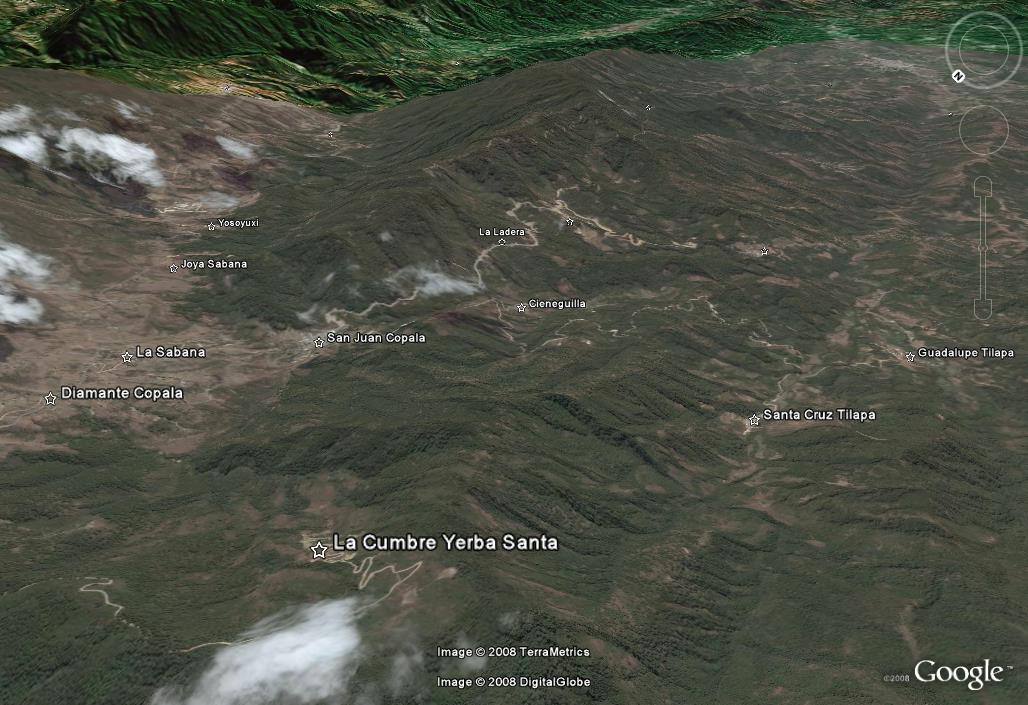 Una vista de la parte norte de la región triqui desde el noroeste.