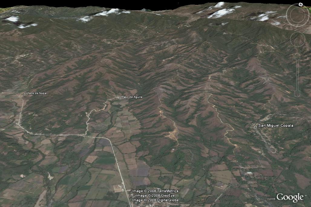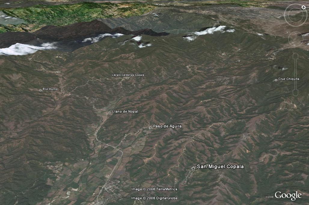 Una vista de la mayoría de la región de Copala desde el sureste.