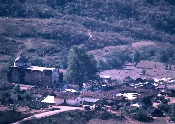 es una vista cuesta abajo hacia Putla desde la puerta de una